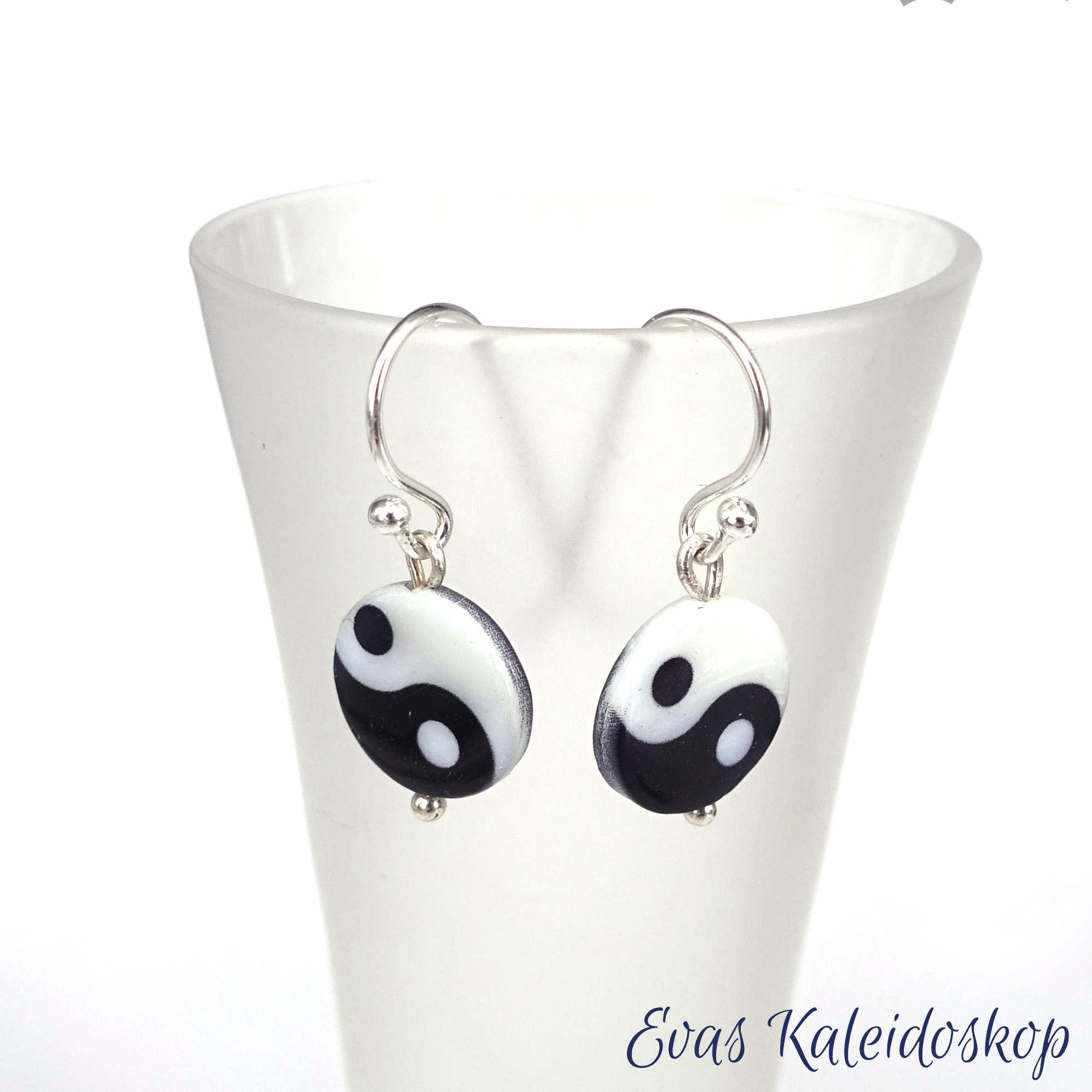 Hübsche kleine Ohrringe mit Yin und und Yang. Sie sind aus Perlmutt auf einem Silberstift mit Silber Ohrhaken.