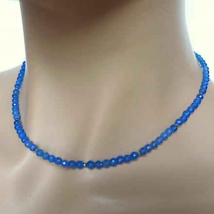 Leuchtend blaue Achat Kette mit eloxiertem Hämatin
