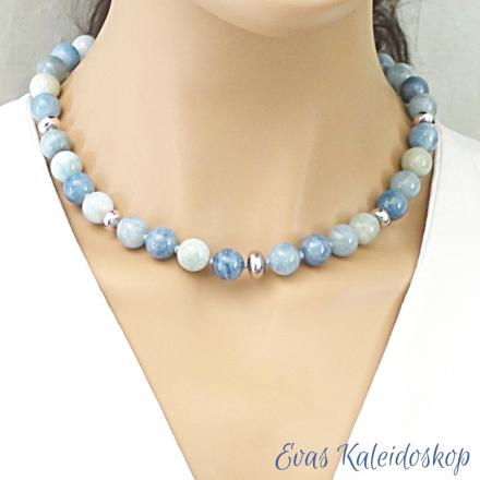 Große Aquamarinkette in unterschiedlichen Blautönen mit Magnetverschluss