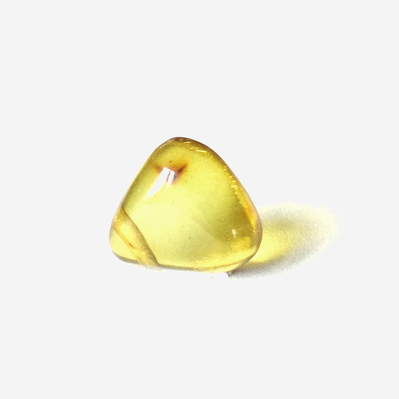 Die Bohrung ist groß genug für eine dünne Kette, allerdings ist ein Seiden- oder Baumwollband eher zu empfehlen. Wie der baltische Bruder ist auch dieser Bernstein spröde.