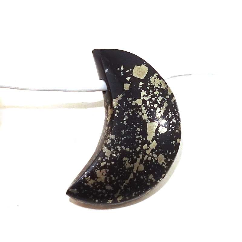 Pyrit in Schiefer 28 mm lang mit bohrung für einen Reif oder Lederband