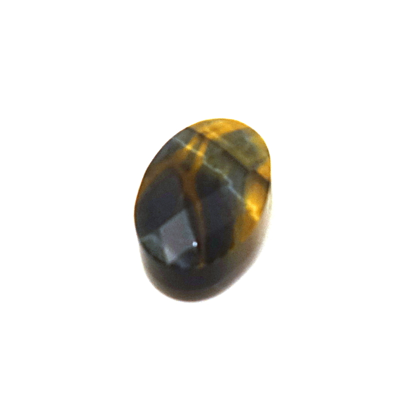 Das Tigerauge ist eher dunkel und ist 15 x 23 mm groß.