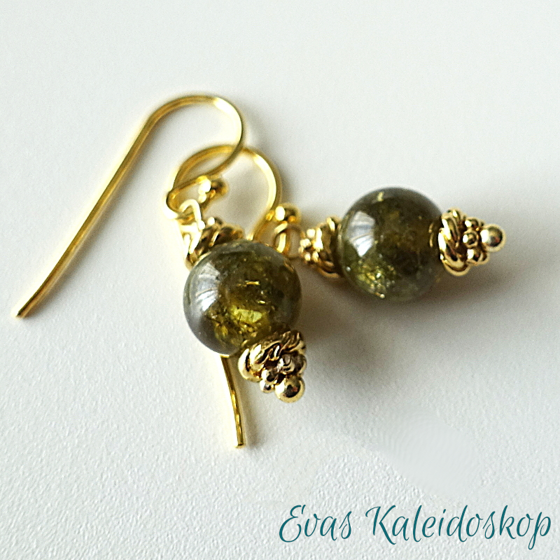 Mali-Granat Ohrhänger, sattes Moosgrün mit reichem Innenleben