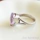 Durch die Art der Fassung wird der klare helle Amethyst sehr schön beleuchtet. Der beidseitig facettierte Stein wird von drei Krappen gehalten, die aus der Ringschiene heraus gestaltet wurden. So funkelt der Stein bei jeder Bewegung. Die Tropfenform streckt den Finger ein wenig, die Spitze des Amethyst ist gut durch die Fassung geschützt.